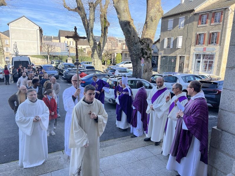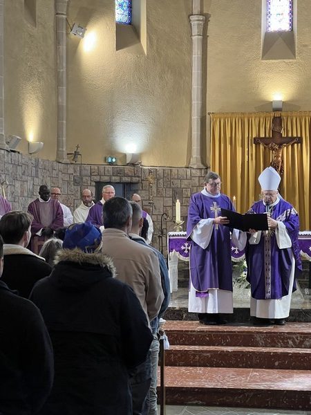 C’est au cœur du Sidobre, célèbre pour ses concrétions granitiques et ses rochers célèbres, qu’une soixantaine de catéchumènes ont été réunis pour répondre à l’appel décisif de Mgr Jean-Louis Balsa, archevêque d’Albi. Sous un soleil quasi-printanier, ces catéchumènes ayant découvert l’appel du Christ dans leur vie, ont effectué cette démarche dans un parcours familial ou personnel parfois difficile ; le rôle de leurs accompagnants, parrains et marraines, étant à cet égard essentiel, ces derniers jouant le rôle d’aînés dans la foi. C’est au sein de l’église St Georges de Brassac qu’a eu lieu cet appel décisif et nominatif, organisé par le diacre Damien Quintard, responsable diocésain de la catéchèse des adultes. La célébration de ce 1er dimanche de Carême portait sur les tentations ; la Genèse mettait en scène la consommation du fruit défendu, favorisée par le serpent, dans le jardin d’Eden ; Saint Paul indiquait dans son Epître aux Corinthiens que la faute d’Adam avait permis la chute de l’homme, arraché à la mort du péché par le sacrifice du Christ sur la Croix. Saint Matthieu relatait l’épisode de la triple tentation de Jésus au désert. Dans son homélie, Mgr Jean-Louis Balsa insistait sur inévitables tentations qui assaillent chacun ; y succomber entraîne le péché ; ce péché est comme une mort qui nous coupe de Dieu ; le péché est ce qui nous fait instrumentaliser les autres au lieu de les aimer. Jésus, tenté par le diable, se veut solidaire de nous jusqu’au bout, évitant d’utiliser ses pouvoirs divins pour déjouer les pièges du démon ; Jésus vrai homme et vrai Dieu, a voulu partager notre humanité jusqu’au bout. Il nous invite en tuant le péché qui nous menace, à le suivre sur le chemin de la Résurrection. La célébration s’est poursuivie par l’ouverture d’un registre diocésain où chaque catéchumène a pu apposer sa signature. L’animation musicale et les chants étaient assurés par la chorale paroissiale, renforcée par le chœur diocésain, dirigé par Catherine Barthe.