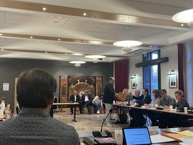 Le remplacement de Marc Miralès, adjoint à la culture, fait l’objet d’un vote à bulletins secrets ; Bernard Habermayer, seul candidat, est élu avec 20 voix sur 33 ; ce dernier en profite pour annoncer la tenue d’une permanence d’UFC Que choisir dans les locaux de France Services ; la prochaine a lieu le vendredi 24 octobre à 10h. Comme suite au rapport de la CLECT, la compensation versée à la commune est de 2039 k€ en 2025 ; idem en 2026.