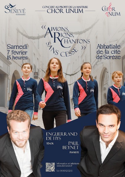 Chers amis de la musique et de Chor Unum : Samedi 7 février à 15h, dans la salle Abbatiale de la Cité de Sorèze, le ténor lyrique Enguerrand de Hys donnera un concert, accompagné au piano par Nicolas Beynet. Enguerrand de Hys est un ancien maîtrisien, devenu artiste lyrique (https://www.enguerranddehys.fr). Ce concert sera une odyssée musicale d’exception, mêlant mélodies françaises, airs d’opéra et d’opérettes. Il sera donné au profit de la maîtrise Chor Unum. En effet, Enguerrand de Hys a accepté de parrainer la maîtrise Chor Unum. Le lendemain, dimanche 8 février, il sera présent à la remise d’aube des maîtrisiens, lors de la messe dominicale à Notre Dame de la Platé, à Castres, à 15h30.  Vous pouvez réserver et acheter en ligne vos places de concert au profit de Chor Unum : https://www.helloasso.com/associations/les-amis-du-seneve/evenements/concert-au-profit-de-la-maitrise-chor-unum